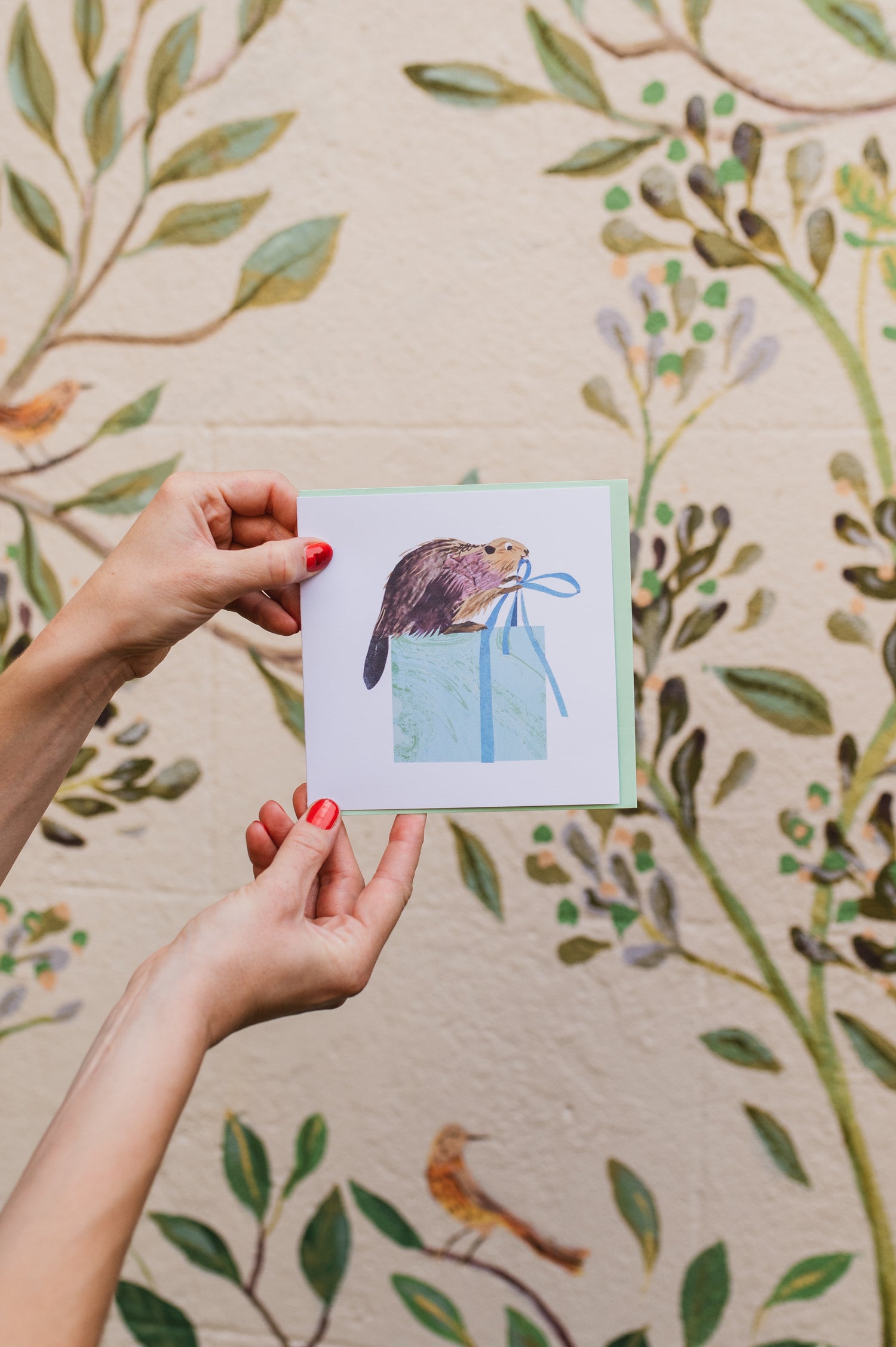 Beaver Ties a Bow Birthday Card - Eco Friendly Greetings Card