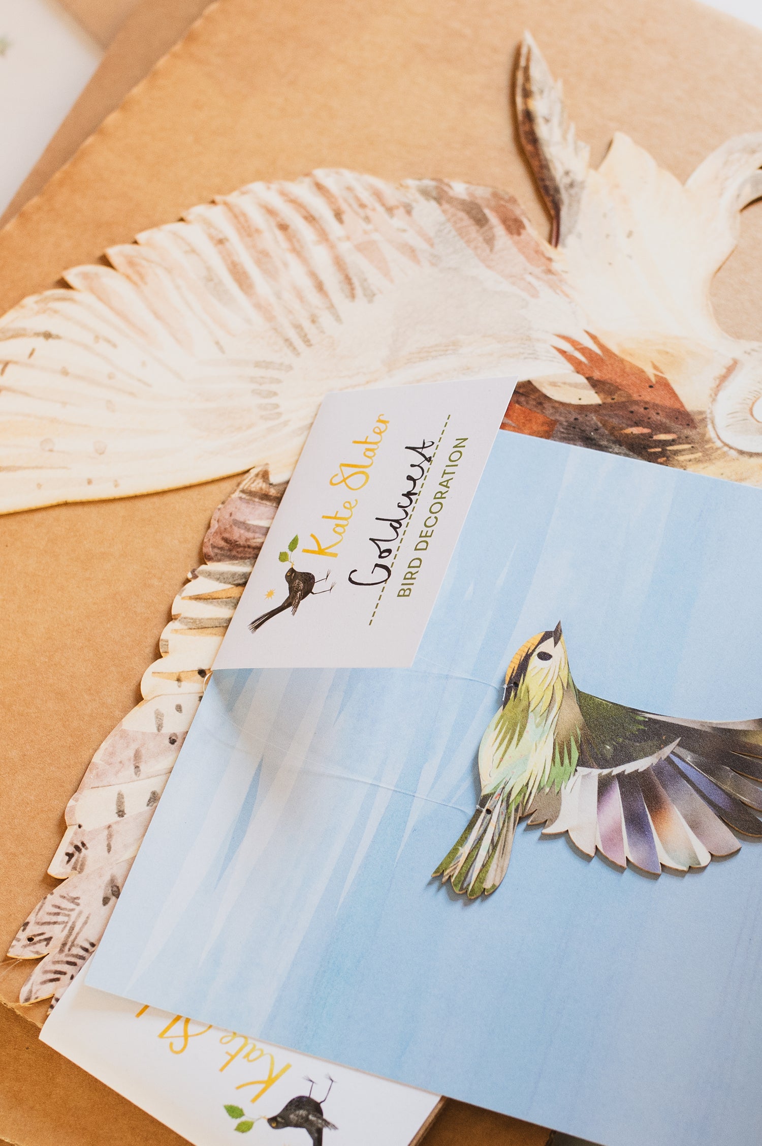 The wren illustration has been printed on mount board (both sides) and laser cut, with tiny holes to string with transparent wire. Your bird will also come with a star which can be added to make it even more magical!